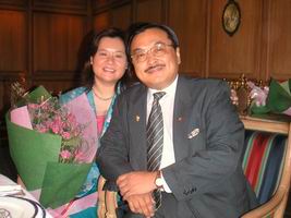 邀請人:RI第3520地區 前總監邵偉靈PDG Dens伉儷 時 間:91年8月25日(星期日)中午12時30分 地 點:臺北市來來大飯店二樓安東廳 |