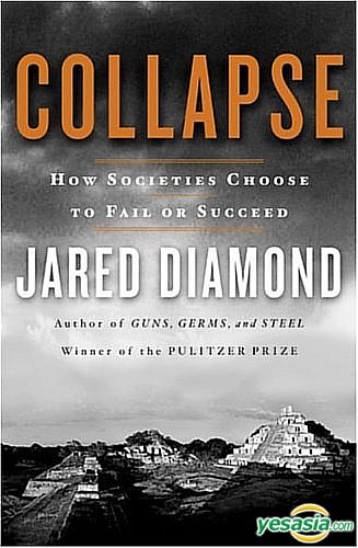 崔君肯定兩萬五千美軍尚在南韓,南韓學生尚可出國留學。我於是舉杯祝彼此健康,送客時已是晚上十點半,年輕的一桌早已解散改到電視室去了。 換個話題。 上周在書店裡買到本(05)年才出版的新書,名為崩潰Collapse,作者是加大科學系教授Jared Diamond,曾獲Pulitzer獎。 意譯很驚人的幾段供讀者參考: 第151頁:「四十年前我曾在新幾內亞工作,土人對西方人的風俗將親人死後立即火葬或葬入土裡認為不妥,未能給予死者肉體被吃的這份榮耀。我有一位最好的工作人員突然辭職,原因是要去參加肉食他未來女婿的遺體」。 序言第11頁:「一個社會的崩潰有五個原因,環境被破壞、氣候變化、敵意的鄰居、善意的貿易及對環境的變遷的集體反應」。 當然我朋友崔君的祖國並未接近如此悲觀的日子,不過我們都能理解也並不生疏於這種社會變遷。