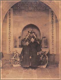 1925年3月孫中山在北京逝世。該圖是宋慶齡、孫治平(孫中山的長孫)在碧雲寺為孫中山守靈。