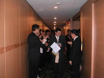 職業服務~百業精英表揚活動 93/10/14(日) 本社職業服務委會為發掘各行各業之傑出菁英,透過了一百多個商業同業公會的共同推薦,一共接獲十個商業同業公會共十六位精英的推薦,本社再分別邀請至例會現場複審,並加以了解菁英是否以為表率,經由職業服務委員會熱烈討論及十月份理事會通過之決審後,一共有九位精英將接受本社表揚。 透過扶輪社國際化的組織、文化的洗禮,與世界的接軌,讓各位菁英其奮鬥之歷程成為典範。為肯定他們在社會上之傑出表現,特於10/14舉辦『扶輪百週年百業精英表揚活動』,也因此使得整個會場顯得更加的熱鬧。 活動即在職業服務主委Jenny社友說明此次意義後展開。活動中,分別由Benson、Jerry、Vitamin三位社友介紹七位百業菁英(另二位受表揚者因臨時有重要會議,無法出席)。當三位社友在介紹他們在職掌上對企業樹立良好的典範之所有的具體事蹟都加以詳細介紹時,讓當日出席的社友嘖嘖稱奇、讚聲連連。在種種的優良事蹟下,本社Donny社長代表致贈精美獎牌及禮品以茲紀念。 當日表揚活動就在愉快的下,畫下了一個完美的句點。