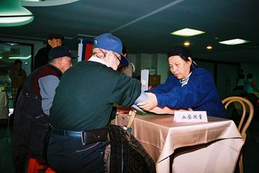 三總10位醫生護士組成的『健康長壽區』,提供老人們簡易的健康檢查及諮詢