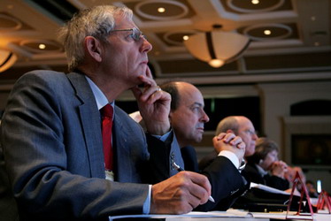 國際扶輪社長白義德強調關鍵服務範圍內的扶輪工作將於2007-2008年度中持續下去。 RI President William B. Boyd stressed that the work of Rotary in key areas of service will continue in 2007-2008. / Photo by Alyce Henson/RI |