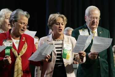 扶輪領導人和他們的配偶唱歌" 噢,多麼美麗的早上" 以及其他歌。 Rotary leaders and their spouses sang "Oh, What a Beautiful Morning" and other songs. / Photo by Monika Lozinska-Lee/RI |
