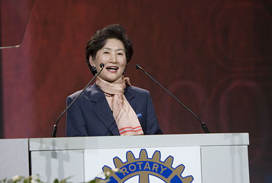 國際扶輪社長當選人李東建的妻子李洋子向配偶全體會議演講。