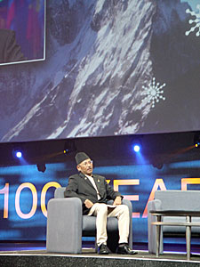 主辦扶輪青年服務團團員攀登聖母峰的尼泊爾扶輪社員Gopal Sunder Lal Kakshapti,他 談論到攀登這個世界的最高峰的激情和體能的考驗。照片:Alyce Henson |