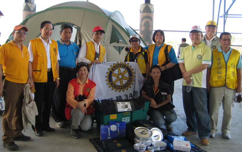 Box〞時,國際扶輪的徽章貼在綠色的塑膠箱,感覺似曾相識,原來屢屢於扶輪月刊上看到的海外災區現場,庇護屋的箱子,此時竟呈現在國人眼前,庇護屋是由一個可住8~10人的帳篷、毯子、淨水器具、炊具、其他基本工具等組成,箱子有編號,以利捐贈者知道去向,每箱價值約三萬台幣(含保管費、運費)每箱可以維持六個月的居住,主旨在為災民提供臨時住所。