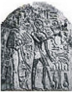 An Egyptian stele depicts a priest with a
