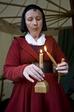 在黃昏,瓦力克城堡性格演員點燃一支蜂蠟蠟燭去給孩子們讀故事。2009年6月21日英國瓦力克郡瓦力克城堡所主辦的中世紀壯觀的活動。