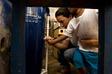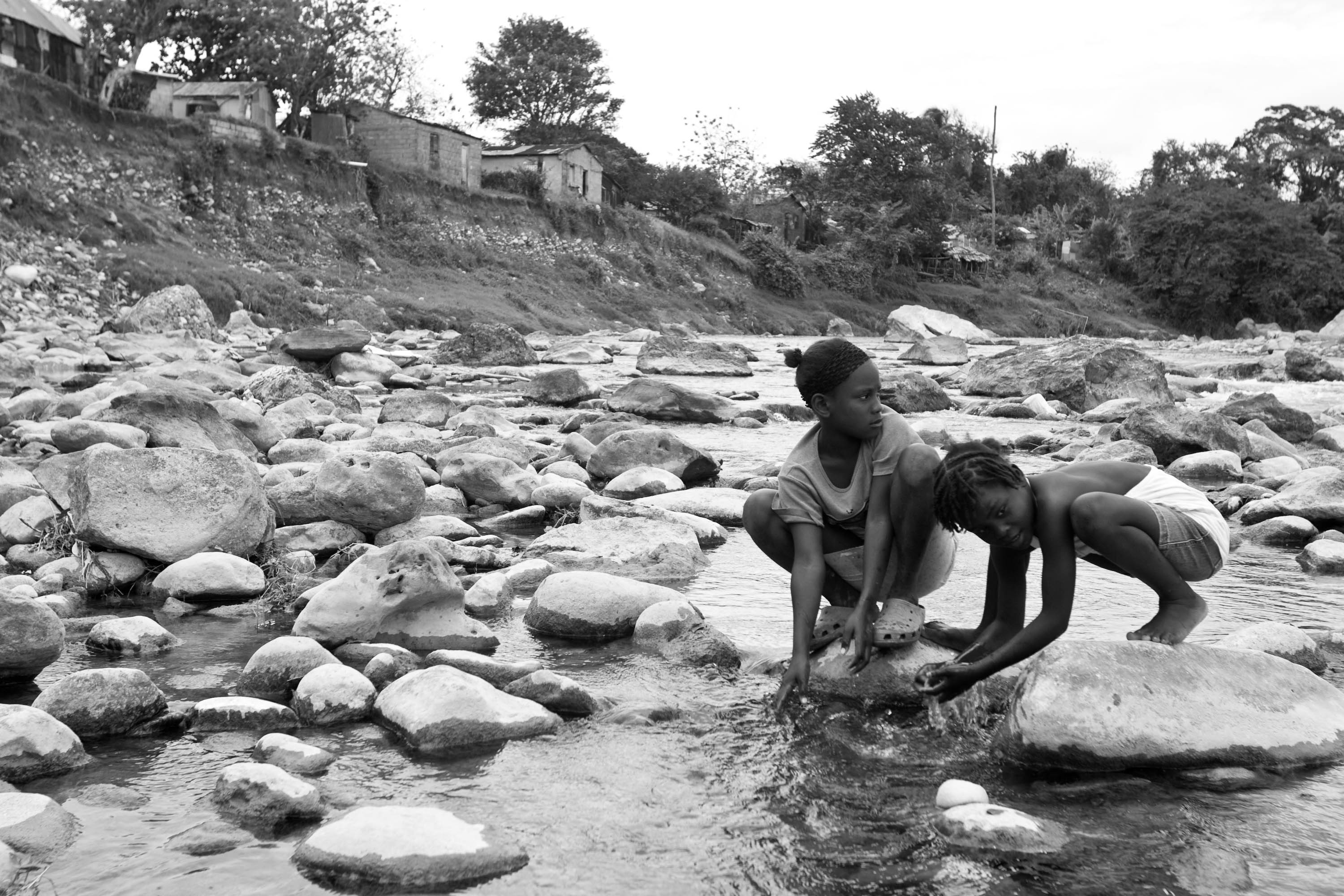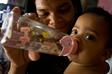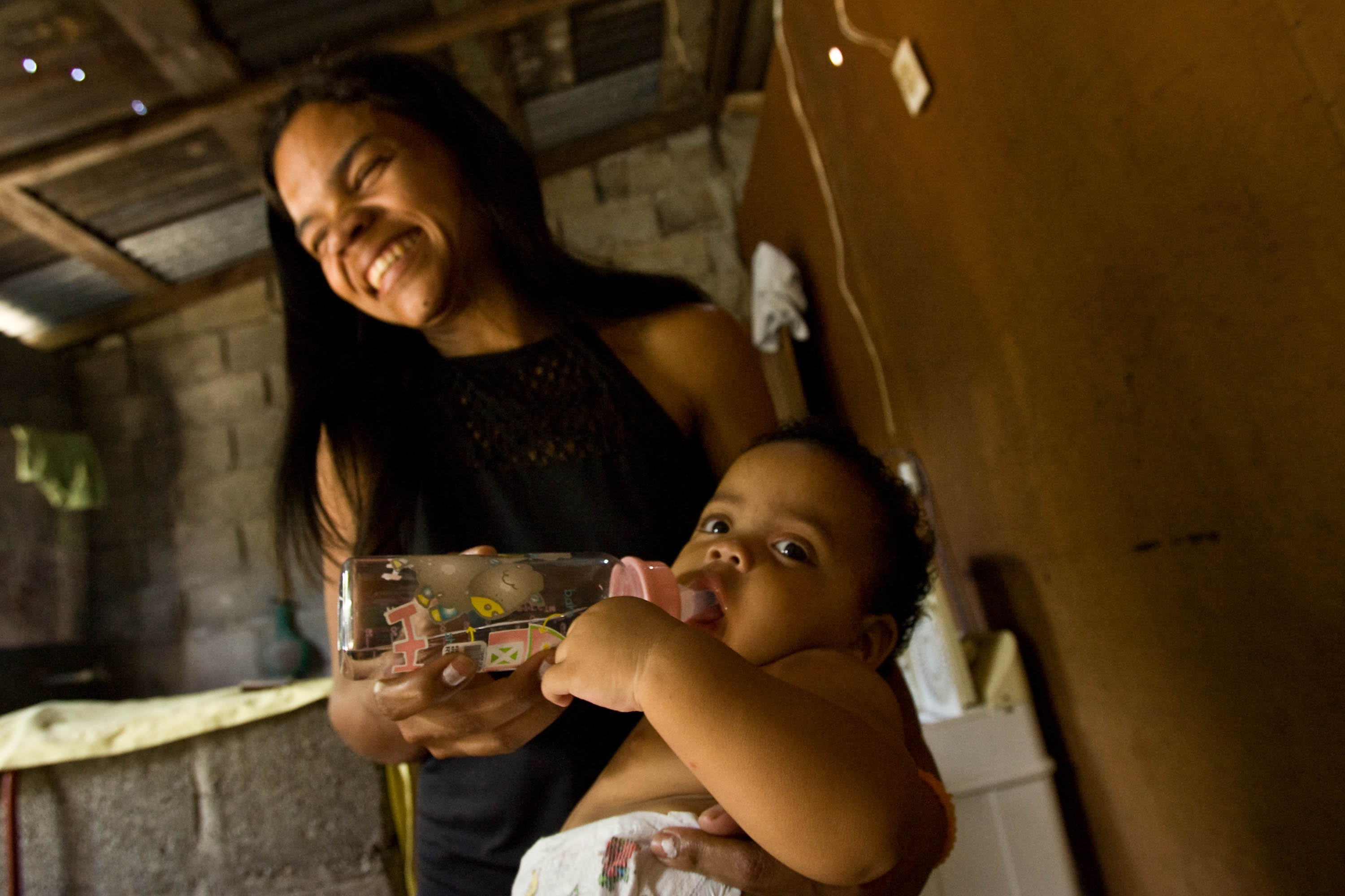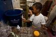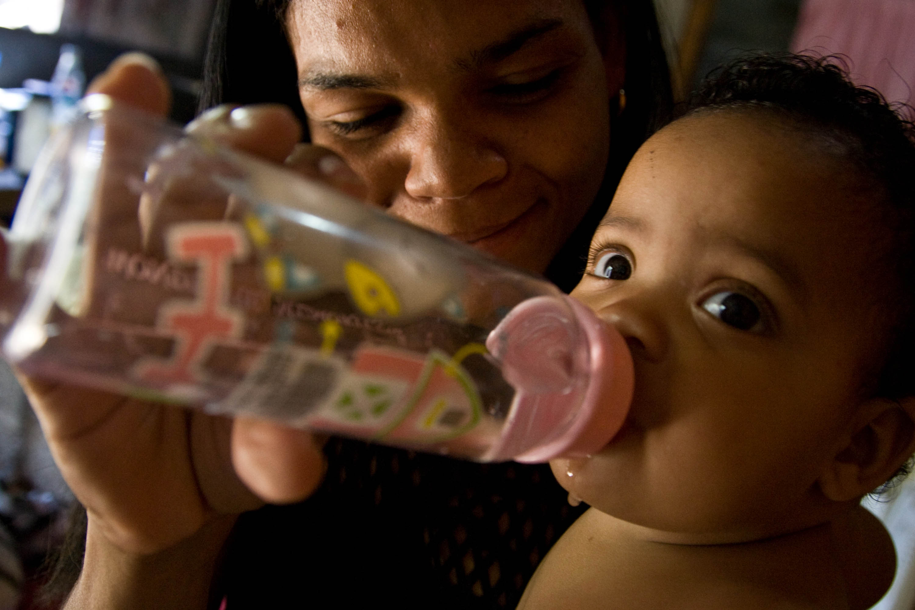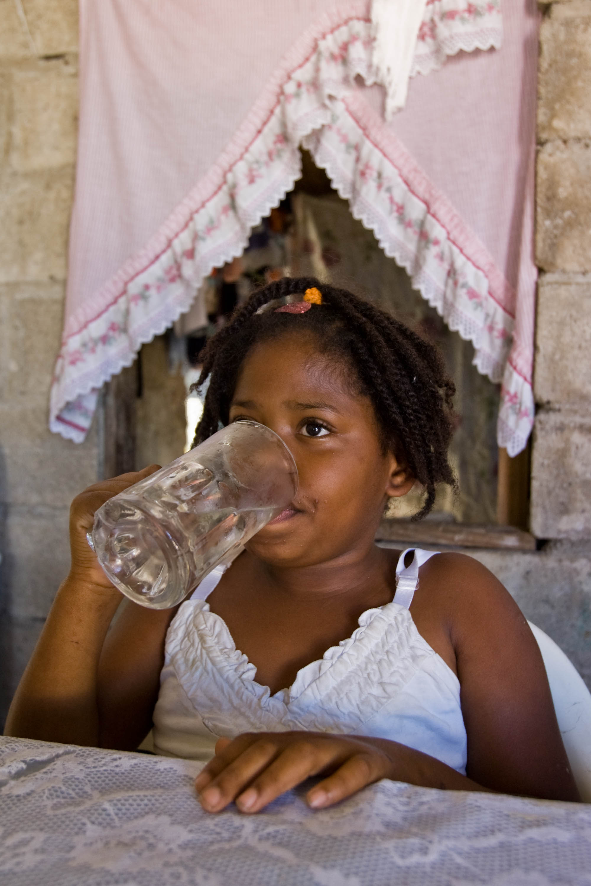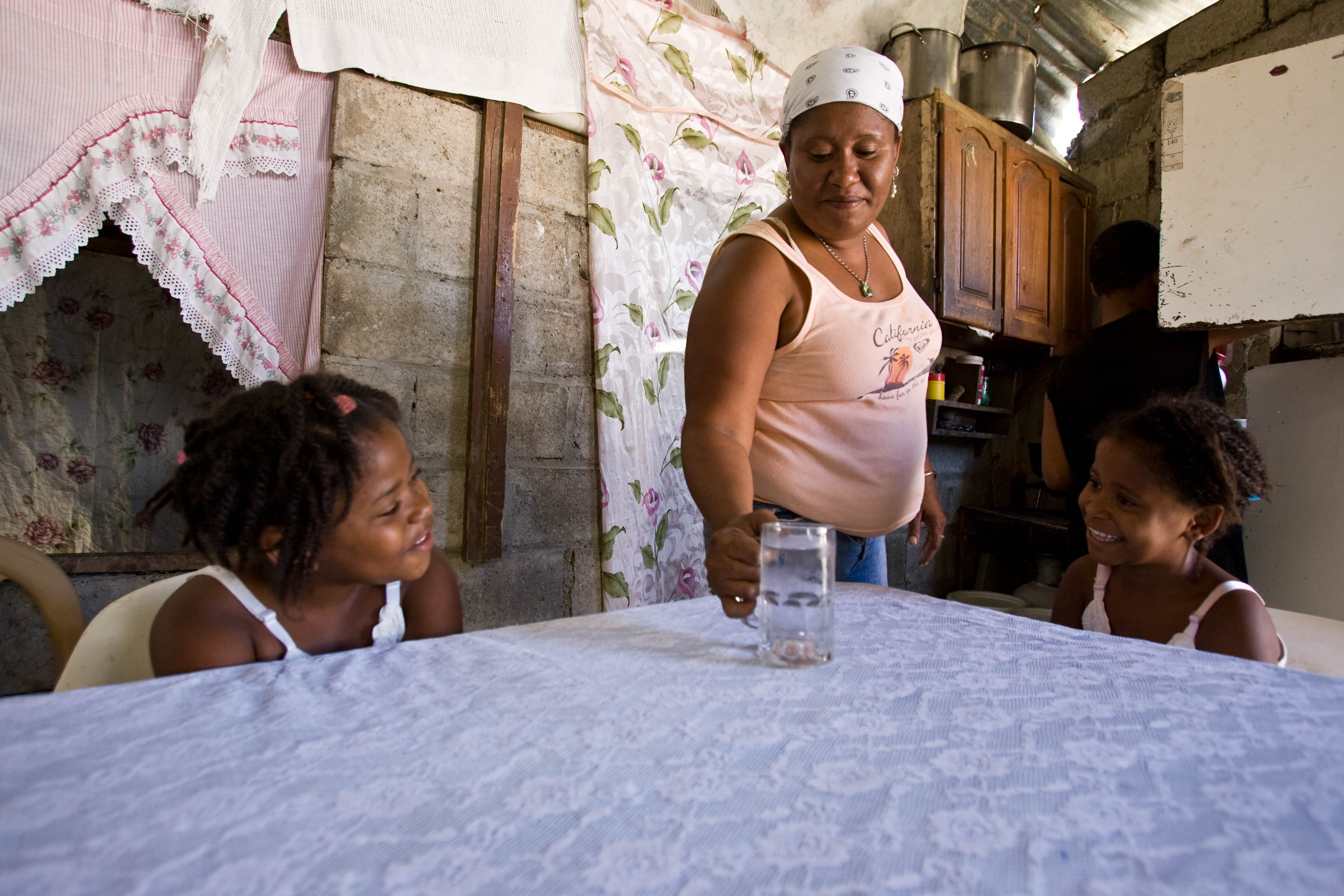 Yoselin Bierd給一杯乾淨水給她女兒九歲的Yokira和八歲的旺妲。她在她的家裡有一個生物沙水過濾器並且以能飲用安全、適於飲用水保持她的家庭健康而自豪。
