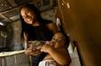 Padilla Bierd在喝一盃清涼的乾淨水。在家她的家中有一台生物沙水過濾器,而她的母親Yoselin以能給她的孩子提供乾淨的水而自豪。