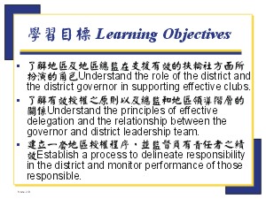 地區組織如何支援有效的扶輪社 地區應扮演什麼角色,來支援有效的扶輪社? ◆ 投影片 2-d