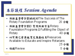 III. Resources Available to Educate and Inspire Rotarians about TheRotary Foundation (25 分鐘) 教育及啟發扶輪社員了解扶輪基金會時可利用之資源
