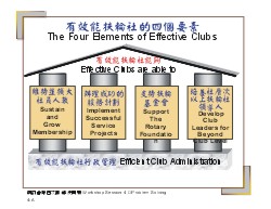 材料Materials 投影片 a. 有效能扶輪社的四個要素The Four Elements of Effective Clubs b. 地區檔案District Profile c. 扶輪社的最低標準Minimum Standards for Rotary Clubs