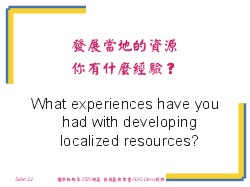 材料Materials: 投影片Slides 20. 學習的目的Learning Objectives 21. 社員發展資源Membership Development Resources 22. 你有什麼經驗…What experiences have you had…