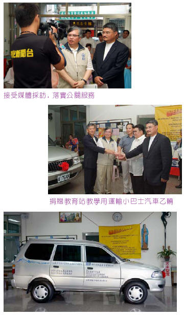 午餐結束後由社長帶領社會服務等先遣部隊前往即將啟用的教養站進行佈置會場與最後細節安排。當大夥兒抵達現場時,配合當日聖十字節遊行活動的準備大約也已準備完成,菲律賓籍的牧師與選出來的配對俊男美女已準備好遊行,非常醒目的一輛休旅車佔據了所有參與今天活動目光,代表我們榮耀的扶輪LOGO與參與這個盛會的扶輪社印在車身上,就像安了馬鞍即將服役的駿馬,安安靜靜的吸引所有人的目光。從牧師與一些菲律賓友人的致辭中,我們充分的感受到感激與感動,社友與寶眷們此時一定感受到施比受有福的道理,教友們完成遊行活動後回報我們的是一幕幕純真的表演,我們充分感受到這些非職業表演者的用心與熱情,從<脫垂>的演出讓我們更能感受到愛與奉獻。當日的氣溫有點熱,但我們卻不曾聽到社友們有任何的報怨,看著社友及夫人們一個個沉浸在教會準備的溫馨的表演,時而哄堂大笑、時而報與熱烈掌聲,我們感受不到世俗的紛擾與遮掩,我們看到樸實的真誠與滿足,這一場心靈的饗宴讓這趟任務劃下完美的句點。