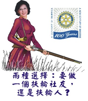 總監於簡短內文中提及︰「處身於這個重要的時代,我們有兩種選擇:要做一個扶輪社友,還是扶輪人?」; 一語道破!許多人必然有“扶輪社友和扶輪人有何不同的疑問”,且看總監接下來的論述︰「扶輪社友會把他的角色扮演得稱職,但是,扶輪人卻把扶輪的成功,視為首要的任務。」 “扶輪社友會把他的角色扮演得稱職”,當然指的不外乎是‘出席聯誼’和‘參與服務’兩件事; “扶輪人卻把扶輪的成功,視為首要的任務”,筆者認為即是泛指‘發揚扶輪精神與擴張扶輪友誼’的行為和思想。 本地區最資深的扶輪人PDG Ricardo亦曾為文指出︰「紀念百週年不需要好話去粉飾。它能活生生的存在於這個動亂的世紀已足證明人類文明史上有它自己的一頁…〈你我〉只不過是個非常單純愛好自由平等友誼共榮的平民。」 扶輪能歷百年不顯老態,就因扶輪人有許多良法美意,加上組織結構嚴密、奉行“友誼、服務”信念。當然,扶輪社員均屬精英專才,難免各種想法意見相左,山頭林立不易避免;其結果與影響所及的好壞,實操縱在社長與理事等幹部手中。 話說扶輪社幹部之派任遴選,均經前賢匯聚(提名委員會),詳細比對討論各項資歷成效,集眾之智,提綱挈領始付諸邀請委任,絕非由少數人之好惡議決,更不是由金錢財富比較上求得。 談到扶輪章程〈扶輪憲法〉,除經國際扶輪召開‘立法會議’之外,不得修改。細則部份雖可視當屆社長、理事,並經全體社員票選決議修訂,然其內容︰ 1. 〔程序手冊P.261 扶輪社細則第14章P.269 修改〕…得在足法定人數出席之任何例會中,由全體出席社員三分之二之同意票通過…修改案應在至少10天前將通知寄達全體社員;據此,他屆社長理事亦可以相同方式提出異案修訂,故無實質意義。〈當然,優雅的扶輪人基於禮貌,多不會任意推翻早經前任社長、理事,甚至社員大會票決通過的議案,並形成該社‘傳統’。〉 2. 承上項原理,細則修訂前題,需以大眾社友相關議案為主,比如例會時間地點或會費之調整等。〈萬不宜針對‘個人’為對象,修訂討論細則,造成圖利或抵制特定人物情形;且此行為牴觸國際扶輪章程及細則,除傷害誠信之外,可謂一無可取。〉 扶輪人講信修睦;不是玩社會上那套粗淺的‘你兄我弟’。