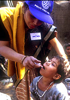 While the number of polio-endemic countries has shrunk to seven, eradicating polio in the remaining countries poses challenges. Efforts to stamp out polio have moved into high gear in India and Nigeria, the only nations registering an increase in polio cases in 2002. 在印度,扶輪與其全球根除行動的夥伴已經採取非常的步驟,來防止類似去年小兒痲痺大流行再度重演。去年的疫情主要集中在北方邦(Uttar Pradesh),也促使印度的小兒痲痺病例從2001年的268件暴增至2002年的1,556件-佔全球新病例數的85%。 In India, Rotary and its global eradication partners have taken extraordinary steps to prevent a recurrence of last year's polio epidemic, which was concentrated in the state of Uttar Pradesh. The outbreak was largely responsible for India's polio cases jumping from 268 in 2001 to 1,556 in 2002 - representing 85 percent of all new cases worldwide. 全球根除小兒痲痺的合作夥伴和印度與北方邦的政府合作,征召印度的電影與板球明星和社區與回教領袖來宣傳這項活動,並釐清小兒痲痺疫苗對兒童有害的不實恐懼。數十萬名兒童參加凸顯免疫重要性的繪畫比賽,數千個社區也里辦集會來進行宣導。 Working with the governments of India and Uttar Pradesh, the global eradication partners enlisted Indian film and cricket stars and community and Muslim leaders to publicize the campaign and allay fears that polio vaccines endanger children. Hundreds of thousands of children participated in drawing competitions to highlight immunizations, and rallies were organized in a thousand communities. 2003年1月初,各界高階領袖出席宣傳全國免疫日活動,獲得廣泛注意。北方邦的省長在與扶輪的代表團會面之後,誓言親自監督該省根除工作的進度。 In early January 2003, an array of top leaders attended high-profile events promoting National Immunization Days (NIDs). After meeting with Rotary's delegation, Uttar Pradesh's chief minister vowed to personally monitor eradication progress in the state.
