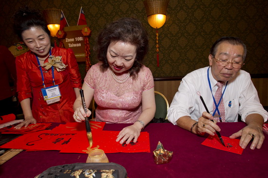 from Taiwan (middle) shows caligraphy making
