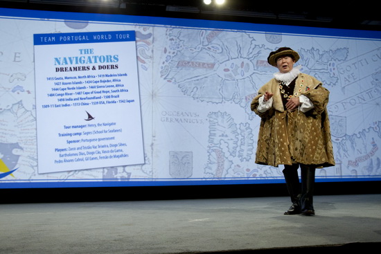 2013年國際年會主委富田於2012年1月20日加利福尼亞聖地牙哥的國際講習會當中的“向前去服務宴會”上推廣2013年葡萄牙里斯本國際年會。