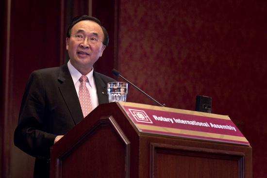 Vaish,於1月20日在2012年國際講習會的“向前去服務宴會”上鼓勵扶輪社員們前往參加國際年會。