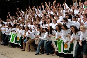 扶輪領袖營學員RYLArians在一個鼓舞士氣的集會中充電。照片:Alyce Henson |