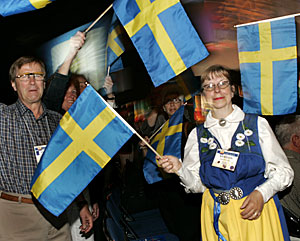 來自瑞典的扶輪社員為下屆國際扶輪社長威罕•施當恆打氣加油。照片:Alyce Henson |