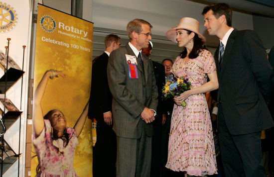 照片提供:Alyce Henson 扶輪的代表與丹麥王子Frederick及王妃Mary討論根除小兒痲痹的種種努力。 Photo by Alyce Henson Rotary representatives discuss polio eradication efforts with Crown Prince Frederik and Princess Mary.