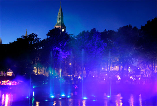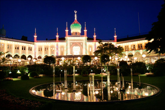 照片提供:Alyce Henson 堤佛里花園在夜色將盡之際,光影搖曳展露其他文化的光輝 Photo by Alyce Henson Tivoli's gardens take on an other-worldly glow as the evening comes to an end.