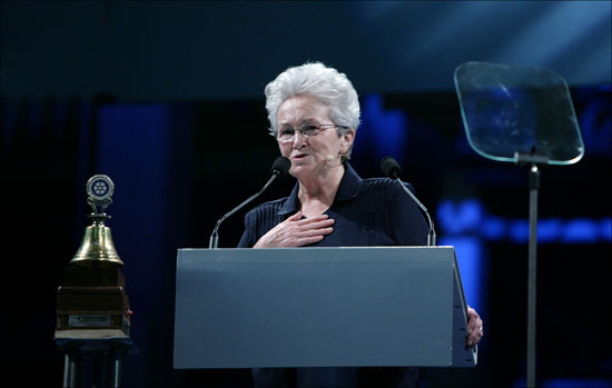 照片提供:Alyce Henson Ethel Normoyle修女在她6月12日國際年會的演講中,為探討扶輪在打破與貧窮、疾病及文盲有關的循環中所扮演的角色的討論訂調。 Photo by Alyce Henson In her 12 June keynote address at the Rotary International Convention, Sister Ethel Normoyle set the tone for discussions about Rotary's role in breaking the cycle that connects poverty, disease, and illiteracy.