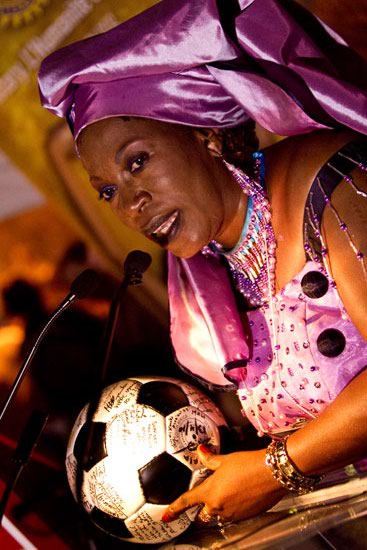 C óte d¡¦Ivoire, holds the soccer ball from the Kick Polio Out of