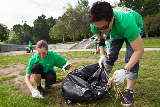 Rotaractors participate in a clean-up at Jeanne-Mance Park in