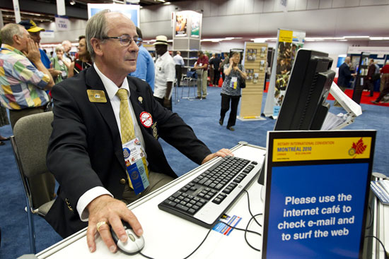 District Governor R Áne Grange visits the Internet cafe in the House