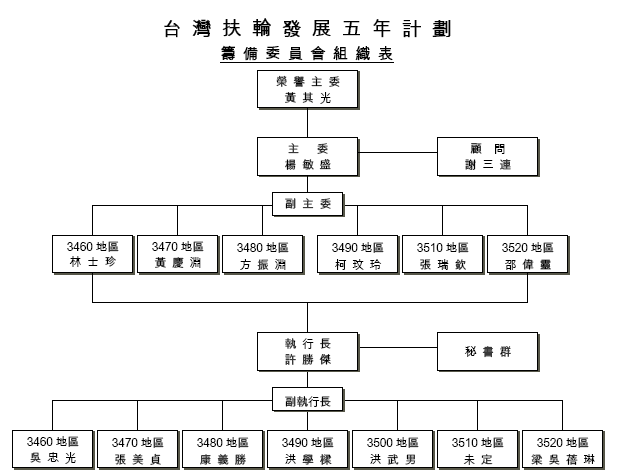 台灣扶輪發展五年計劃 計劃執行委員會 組織表 |