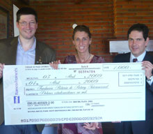 Schaab,帶著所募集象徵1,000美金貢獻的支票給根除小兒麻痺等疾病的扶輪社。吉列爾莫.薩拉斯提供的照片。