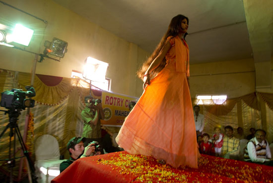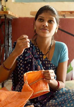 為Maheshwar扶輪社所主辦的活動—Jhoole時裝表演,Deepa把最後的修飾縫在她所設計的一件服裝上。