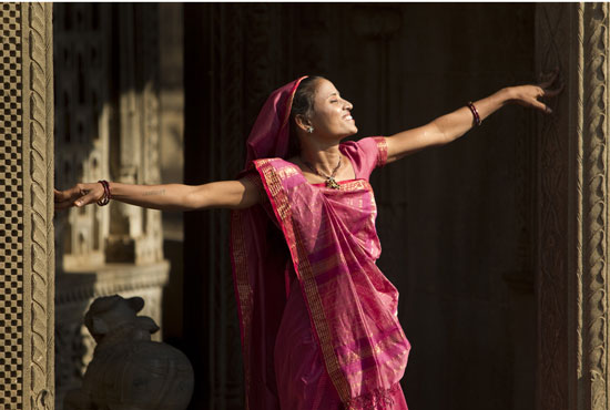 Maya, wearing a traditional silk sari