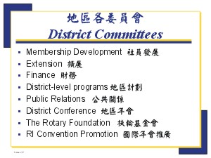 地區組織如何支援有效的扶輪社 District Organization in Support of Effective Clubs (90分鐘) I. Introduction 簡介 (5 分鐘) ◆ 投影片 2-a