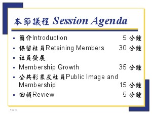 第三節: 保持及增加扶輪的社員人數 Sustaining and Increasing Rotary’s Membership Base(90分鐘) I. Introduction 簡介 (5 分鐘) ◆ 投影片 3-a