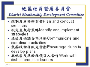 ◆ What are the responsibilities of the district membership development committee? 地區社員發展委員會有哪些責任? ◆ 投影片 3-g