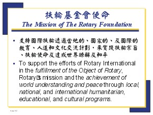 II. Rotary Foundation Programs – Fulfilling the Object of Rotary 扶輪基金會各項計劃—實踐扶輪宗旨 (40 分鐘) ◆ 投影片 5-d