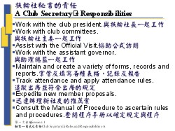 扶輪社秘書的角色及責任 The Role and Responsibilities of Club Secretary 50分鐘 訓練領導人的備忘錄Training Leader’s note: