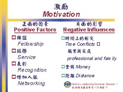 您為什麼參加這個地區領導講習會? What motivated you to attend this district leadership seminar?
